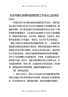 在全市基孔肯雅热疫情防控工作会议上的讲话.docx