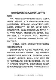 在全市提升旅游服务品质会议上的讲话.docx