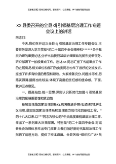 XX县委召开的全县党建引领基层治理工作专题会议上的讲话.docx