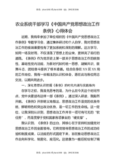 农业系统干部学习《中国共产党思想政治工作条例》心得体会.docx