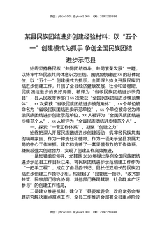 某县民族团结进步创建经验材料:以“五个一”创建模式为抓手,争创全国民族团结进步示范县.docx