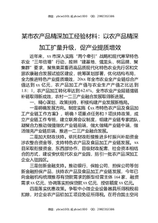 某市农产品精深加工经验材料:以农产品精深加工扩量升级,促产业提质增效.docx