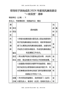 领导班子其他成员党风廉政建设“一岗双责”清单12份(乡镇表格版).docx
