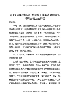 在XX区乡村振兴驻村帮扶工作推进会暨业务培训会议上的讲话.docx