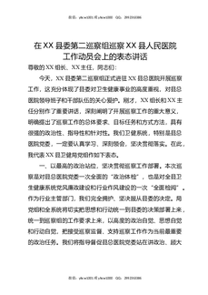 在XX县委第二巡察组巡察XX县人民医院工作动员会上的表态讲话.docx