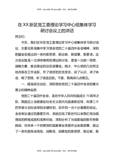 在XX新区党工委理论学习中心组集体学习研讨会议上的讲话.docx