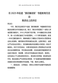 街道“算好廉政账”专题教育月活动推进会上的讲话.docx