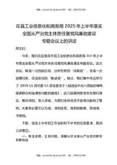 2025年上半年落实全面从严治党主体责任暨党风廉政建设专题会议上的讲话.docx
