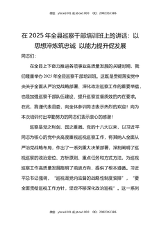 2025年全县巡察干部培训班上的讲话:以思想淬炼筑忠诚,以能力提升促发展.docx