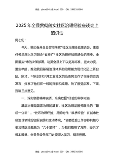 2025年全县贯彻落实社区治理经验座谈会上的讲话.docx