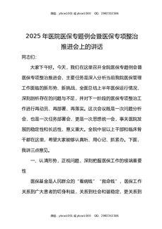 2025年医院医保专题例会暨医保专项整治推进会上的讲话.docx