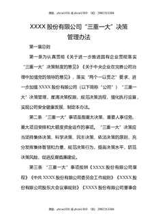 XX股份有限公司“三重一大”决策管理办法附权限清单.docx