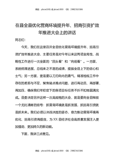 在县全县优化营商环境提升年招商引资扩效年推进大会上的讲话.docx