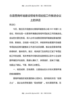 在县营商环境建设领域专项巡视工作推进会议上的讲话.docx