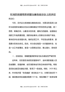 在消防救援局系统整治廉政座谈会上的讲话.docx