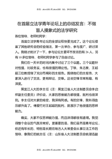 在首届立法学青年论坛上的总结发言:不做盲人摸象式的法学研究.docx