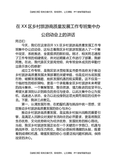 在XX区乡村旅游高质量发展工作专班集中办公启动会上的讲话.docx