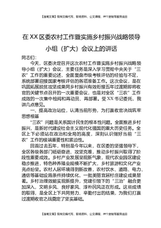 在XX区委农村工作暨实施乡村振兴战略领导小组(扩大)会议上的讲话.docx