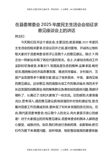 在县委常委会2025年度民主生活会会前征求意见座谈会上的讲话.docx