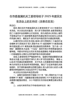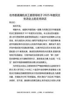 在市委直属机关工委领导班子2025年度民主生活会上的主持讲话.docx