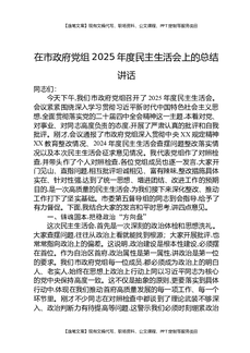 在市政府党组2025年度民主生活会上的总结讲话.docx