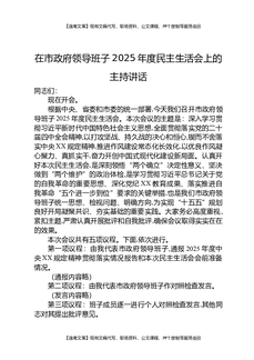 在市政府领导班子2025年度民主生活会上的主持讲话.docx