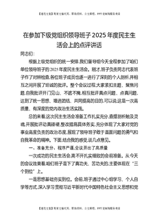 在参加下级党组织领导班子2025年度民主生活会上的点评讲话.docx