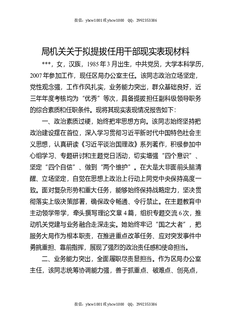 局机关关于拟提拔任用干部现实表现材料.docx