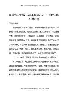 街道党工委意识形态工作调研及下一阶段工作思路汇报.docx