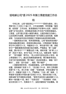 铝电解公司党委2025年第三季度党建工作总结.docx