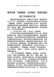 集团党委“党建赋能、业务融合”党建品牌创建工作的情况汇报.docx