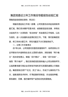 集团党委近三年工作情况专题报告巡视汇报.docx