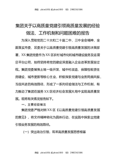 集团关于以高质量党建引领高质量发展的经验做法、工作机制和问题困难的报告.docx