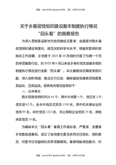 关于乡基层党组织建设基本制度执行情况回头看的督查报告.docx