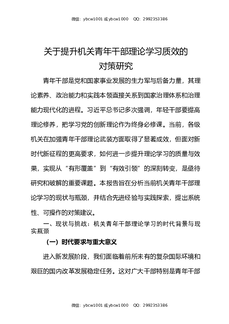 关于提升机关青年干部理论学习质效的对策研究.docx