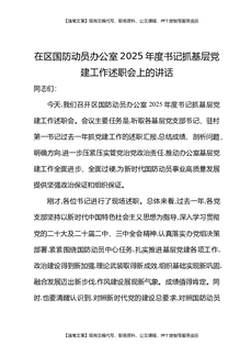 在区国防动员办公室2025年度书记抓基层党建工作述职会上的讲话.docx