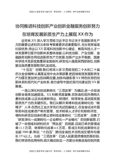 协同推进科技创新产业创新金融服务创新努力在培育发展新质生产力上展现XX作为.docx