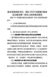 县水务局党组书记、局长2025年度履行推进法治建设第一责任人职责情况报告.docx