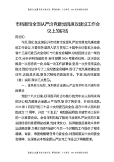 市档案馆全面从严治党暨党风廉政建设工作会议上的讲话.docx