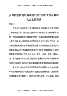 乡第四季度党风廉政建设暨干部职工警示教育大会上的讲话.docx