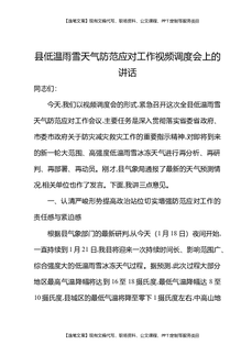 县低温雨雪天气防范应对工作视频调度会上的讲话.docx