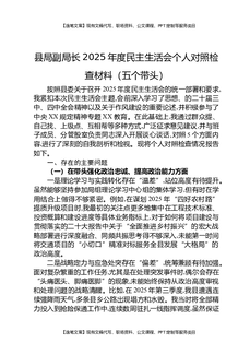 县局副局长2025年度民主生活会个人对照检查材料(五个带头).docx