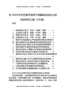 在2026年元旦春节前员干部廉政谈话会上的讲话材料汇编(10篇).docx