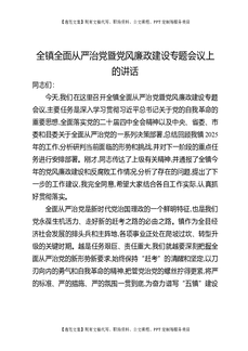 全镇全面从严治党暨党风廉政建设专题会议上的讲话.docx