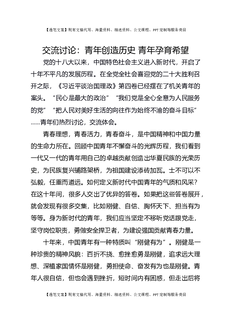 交流讨论:青年创造历史 青年孕育希望