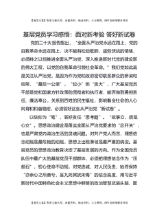 基层党员学习二十大感悟:面对新考验 答好新试卷