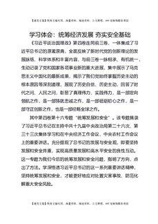 学习体会:统筹经济发展 夯实安全基础