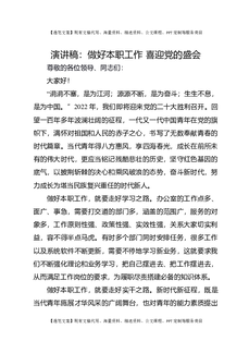 演讲稿:做好本职工作 喜迎党的盛会