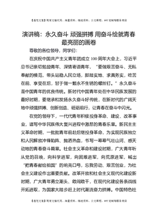 演讲稿:永久奋斗 顽强拼搏 用奋斗绘就青春最亮丽的画卷
