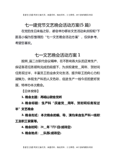 七⼀建党节⽂艺晚会活动⽅案(5篇)
